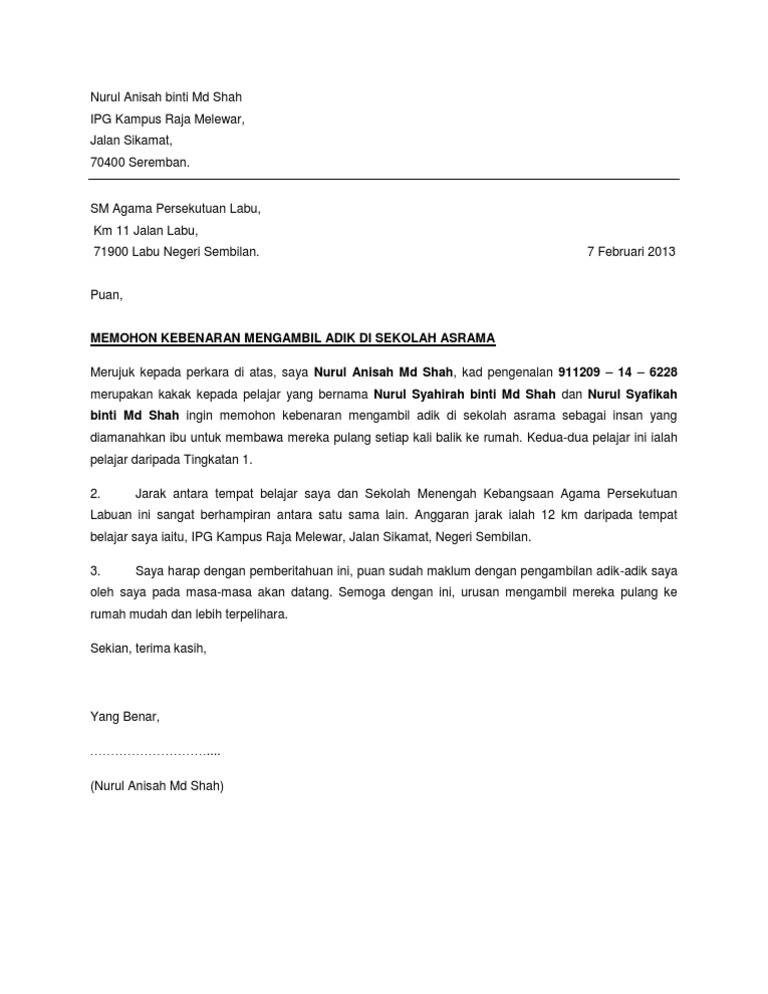 Contoh Surat Rasmi Keluar Asrama Otosection